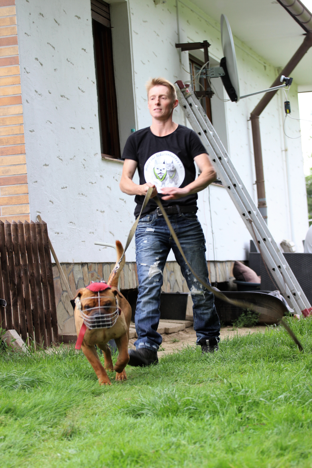 Face kam und wir erkannten ihn nicht mehr. Von dem ehemaligen Herrchen nur in den Freilauf gesteckt, hatten wir ein Problem. Maulkorb hasste er und Nähe sowieso. Also bewaffnete ich mich mit einer Retrieverleine und holte ihn aus dem Freilauf. Da hatte der Junge noch Hoffnung und wollte mit mir am Ende sofort das Gelände verlassen. Nein Face, es geht nicht mehr zurück??. Seitdem sitzt die arme Seele hinter Gittern.