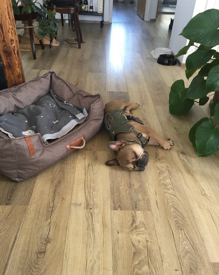 Dort wurde schnell klar das er keine Erziehung genossen hatte bis dahin . Draußen war er von allem gestresst war . Somit auch an der Leine alles gab um Stress abzubauen .