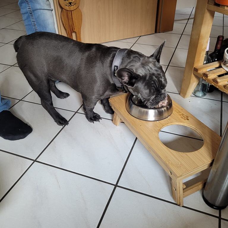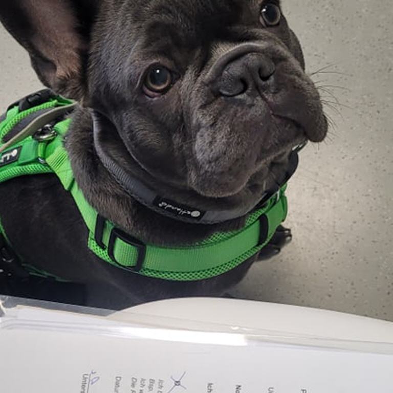 Hier hat er inzwischen auch gut 1 kg abgenommen, was seinen Knochen sehr gut tut. Ein bisschen was muss noch runter aber das schaffen seine Pflegis ganz sicher auch noch. Er hat einen HundeBuggy mit dem er an allen Aktivitäten seiner Menschen teilnehmen kann damit er geistig ausgelastet ist und natürlich alle nötigen Umweltreize kennenlernt.